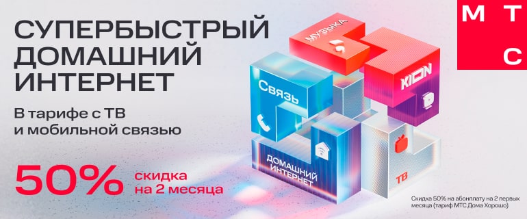 Провайдер МТС предоставляет услуги по подключению высокоскоротного домашнего интернета со скоростью до 1024 Мбит/сек и качественного цифрового/спутникового телевидения до 233 ТВ каналов, а также безлимитной мобильной связи. Подключите один из 12 тарифных планов в Москве, с минимальной ценой абонентской платы от 120 руб/мес.